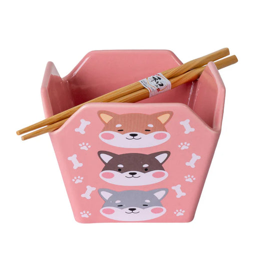 18oz Donburi Bowl With Chopsticks Set Shiba Inu Design
