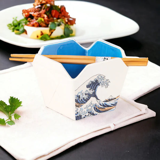 16oz Takeout Box Serving Bowl With Chopsticks Hokusai Wave