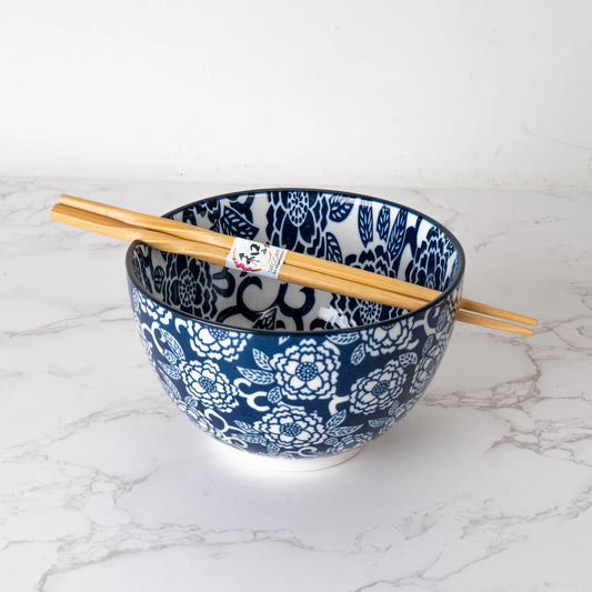 18oz Donburi Bowl With Chopsticks Set Ume Plum Blossoms Design