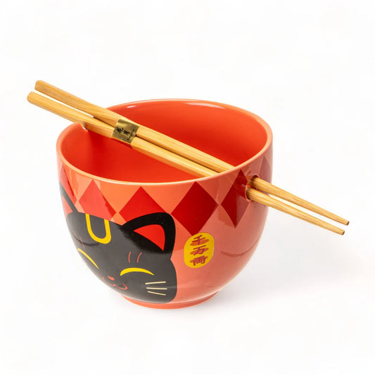 18oz Donburi Bowl With Chopsticks Set Lucky Cat Design