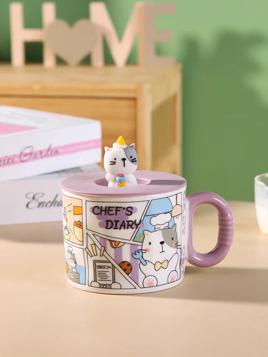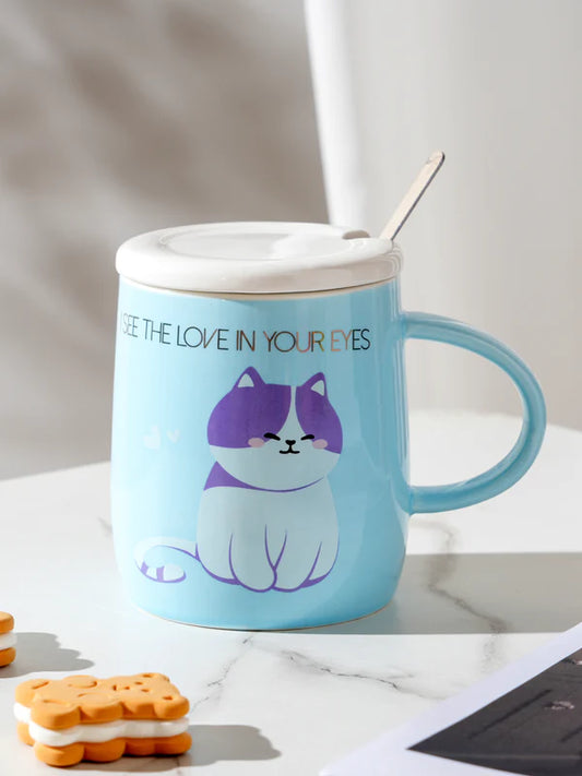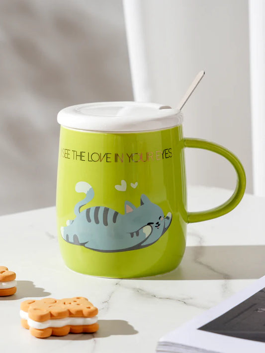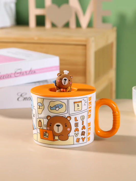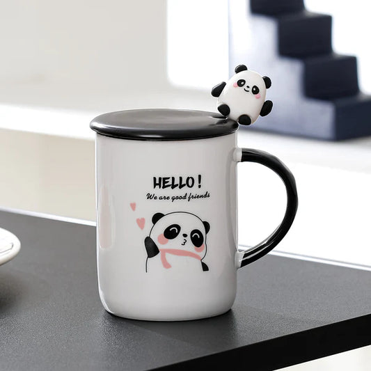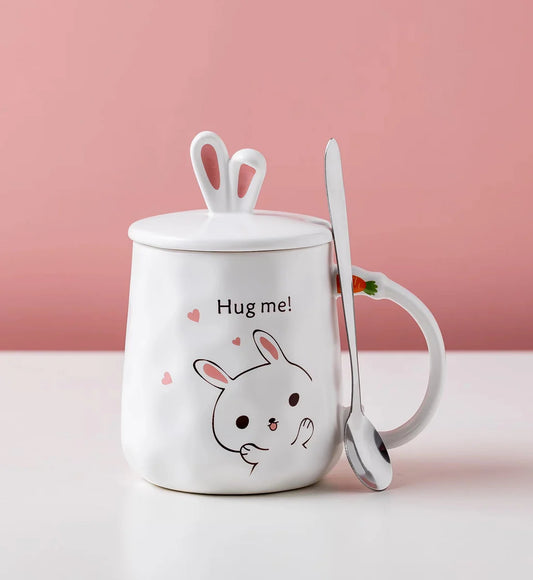 14oz Bunny Happy Rabbit White Mug With Lid and Spoon