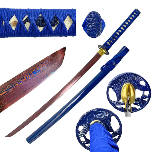 40.25" Blue Damascus Blade Hand Forged Samurai Sword