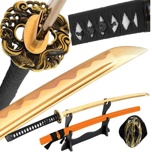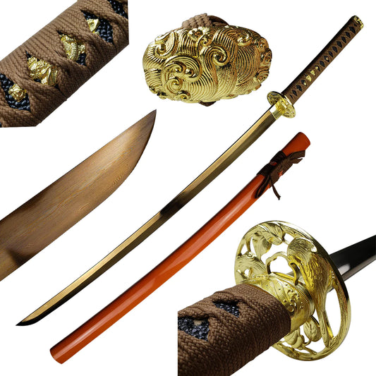 40.75" Gold Carbon Steel Blade Hand Forged Samurai Sword
